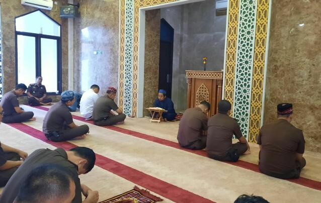 Kegiatan Tausiyah Ba’da Dzuhur di Masjid Al-Mizan Kejaksaan Tinggi Riau mengikuti secara ketat protokol kesehatan (prokes). (ded)