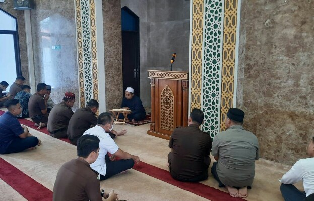 Kegiatan Tausiyah Ba’da Dzuhur di Masjid Al-Mizan Kejaksaan Tinggi Riau mengikuti secara ketat protokol kesehatan (prokes). (ded)