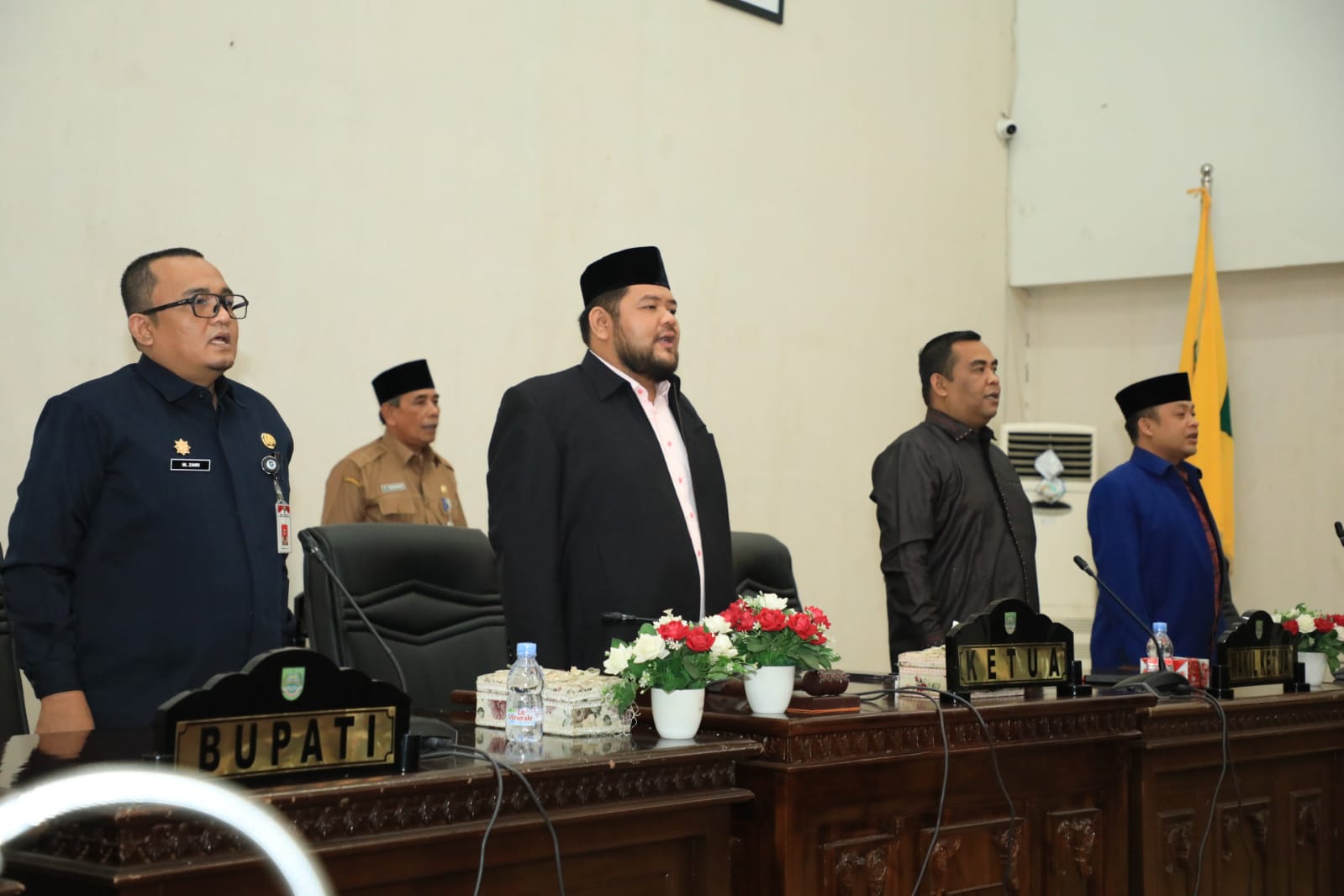 Turut hadir dalam rapat paripurna wakil ketua DPRD Beserta Anggota DPRD, Unsur Forkopimda, Para Asisten dan staf Ahli Bupati, Kepala OPD, Pejabat Eselon II dan III.