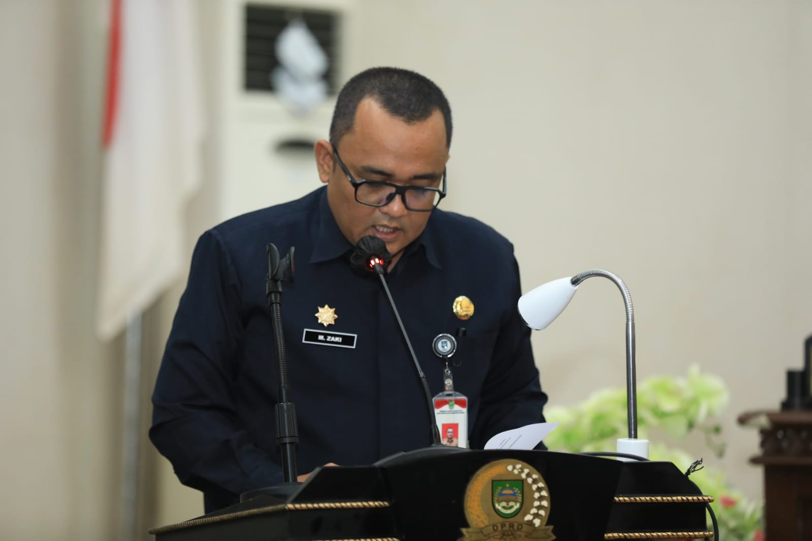 Rokan Hulu - penyampaian Kebijakan Umum Anggaran Prioritas dan Plafon Anggaran Sementara (KUA-PPAS) APBD Kabupaten Rokan Hulu tahun anggaran 2024 disampaikan oleh Sekda Rokan Hulu Muhammad Zaki SSTP, M.Si bertempat di Ruang Rapat Paripurna DPRD Kabupaten Rokan Hulu, Senin (17/07/2023).
