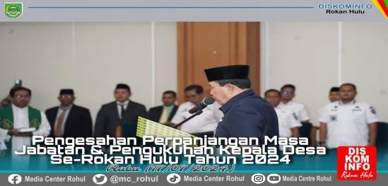 Atas perubahan tersebut, Bupati Rokan Hulu H.Sukiman kembali mengukuhkan seluruh Kepala Desa se Kabupaten Rokan Hulu bertempat di Hall Islamic Center Rokan Hulu, Rabu (17/7/2024) turut di saksikan Wakil Bupati Rokan Hulu H.Indra Gunawan, Sekretaris Daerah Rohul M.Zaki, S.STP, M.Si, Ka Lapas Rohul, Anggota DPRD Hj.Sumiartini, Asisten 1 Setda Rohul H.Fhatanalia Putra, Para Pejabat Eselon II, dan Seluruh Camat se Rohul.