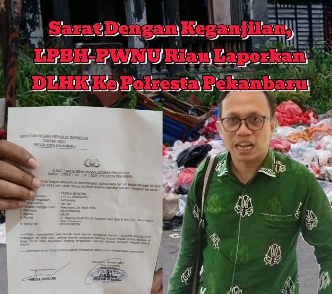 PEKANBARU, - Lembaga Penyuluhan dan Bantuan Hukum Pengurus Wilayah Nahdlatul Ulama LPBH-PWNU Provinsi Riau resmi melaporkan dugaan tindak pidana korupsi pada pengadaan jasa angkutan sampah pada dinas Lingkungan Hidup dan Kebersihan kota Pekanbaru tahun anggaran 2025 ke polresta Pekanbaru, Selasa 8 April 2025.