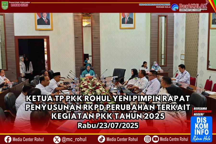 Rapat Penyusunan Rencana Kerja Pemerintah Daerah (RKPD) Perubahan terkait Anggaran Kegiatan PKK Kab. Rokan Hulu Tahun 2025 Di Ruang Rapat Rumah Dinas Bupati, Rabu (23/07/2025).